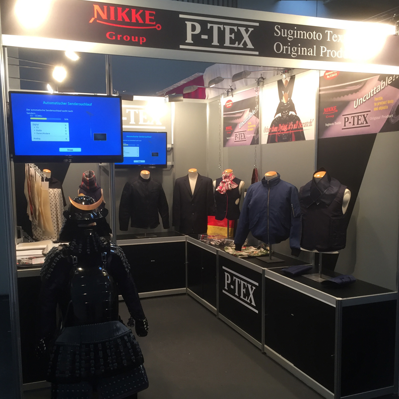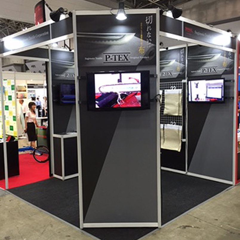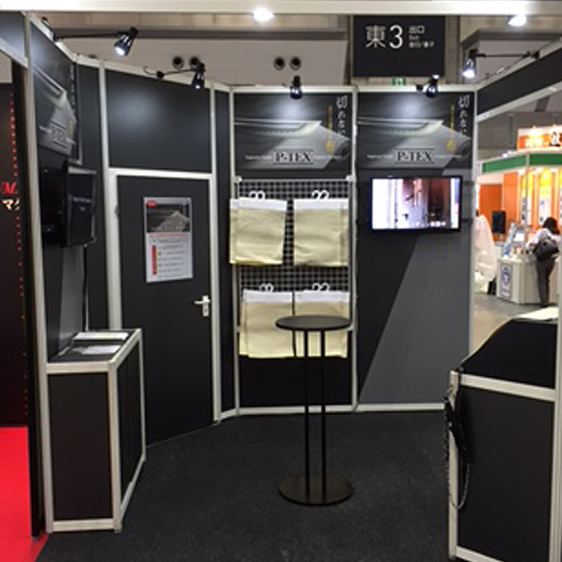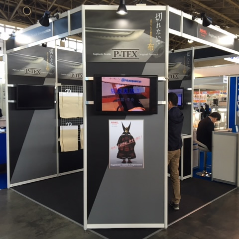 名古屋の吹上ホールで開催されたTECH Biz EXPOに出展いたしました。 『切れない!?身体とモノを守る繊維技術・極靭布』のキャッチフレーズで展示、防刃性だけでなく丈夫で燃えない特殊素材として工場設備関係者や建築・土木関係者、溶接関係者など、多方面での来場がありました。