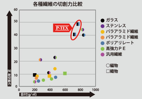 P-TEX の優れた耐切創性